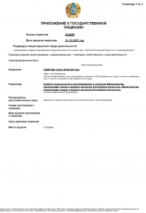 - Гос. лицензия на экологическое проектирование, нормирование и аудит предприятий I категории№01540Р