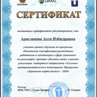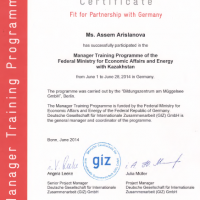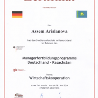 - Менеджер-профессионал (Открытый Университет Великобритании), Микро/Макроэкономика (Институт Общего Управления Турции и Центральной Азии ), Стажировка Федерального министерства энергетики ФРГ