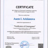 - Сертификаты: Верификатора парниковых газов, Экологический аудит.