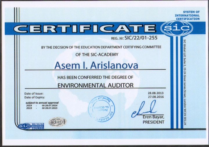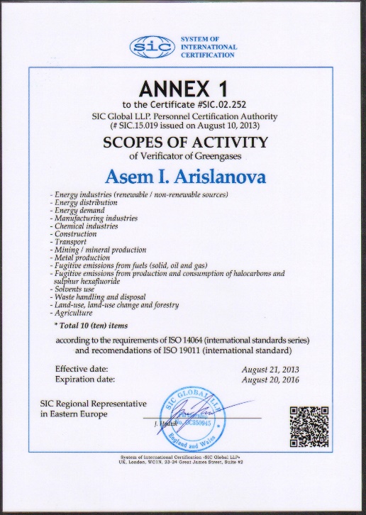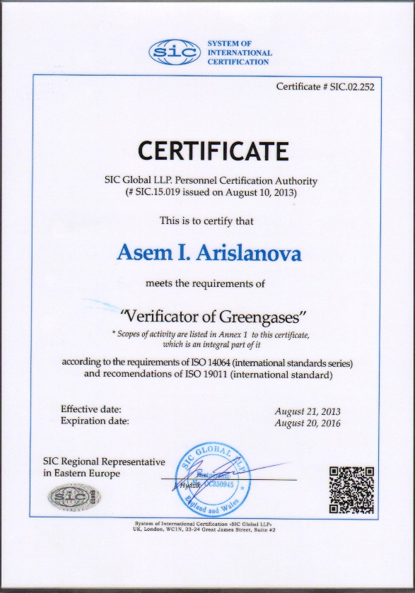- Сертификаты: Верификатора парниковых газов, Экологический аудит.